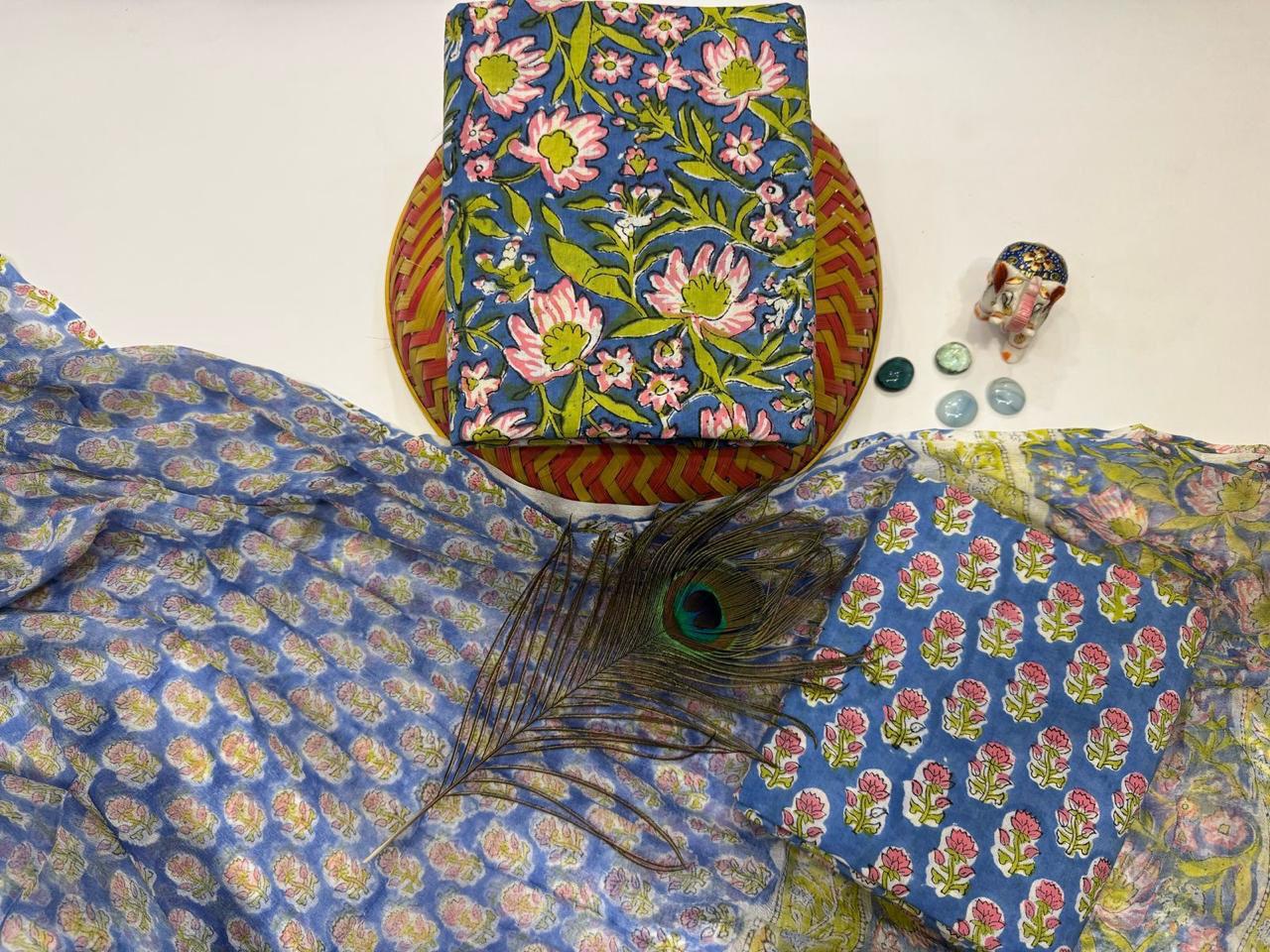 Saavan Sargam – Handblock Printed Cotton Suit Set with Chiffon Dupatta